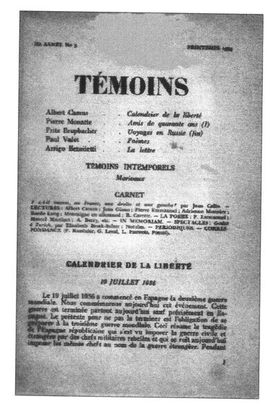 De Témoins, Jean Paulhan, dont on ne saurait contester ni le goût ni l’intelligence de jugement, déclara qu’elle fut « une belle revue, modeste et hardie ». Modeste parce que pauvre, noblement pauvre pourrait-on ajouter, c’est-à-dire ne comptant que sur ses faibles forces et sur ses maigres finances. Hardie parce que tenant haut l’esprit critique en un temps où l’engagement s’apparenta à l’encagement et le scribe au sbire.